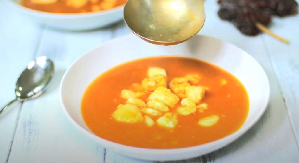 INGREDIENTES 2 litros de agua. 500 grs. de langostinos crudos 400 grs. de rape 1/2 pimiento rojo 1 cebolleta grande 4 dientes de ajo 1 cayena pequeña 2 cucharadas de harina 2 hojas de laurel aceite tomillo punta de pimentón dulce perejil sal PREPARACIÓN En una cazuela, calentar 2 litros de agua con sal y …