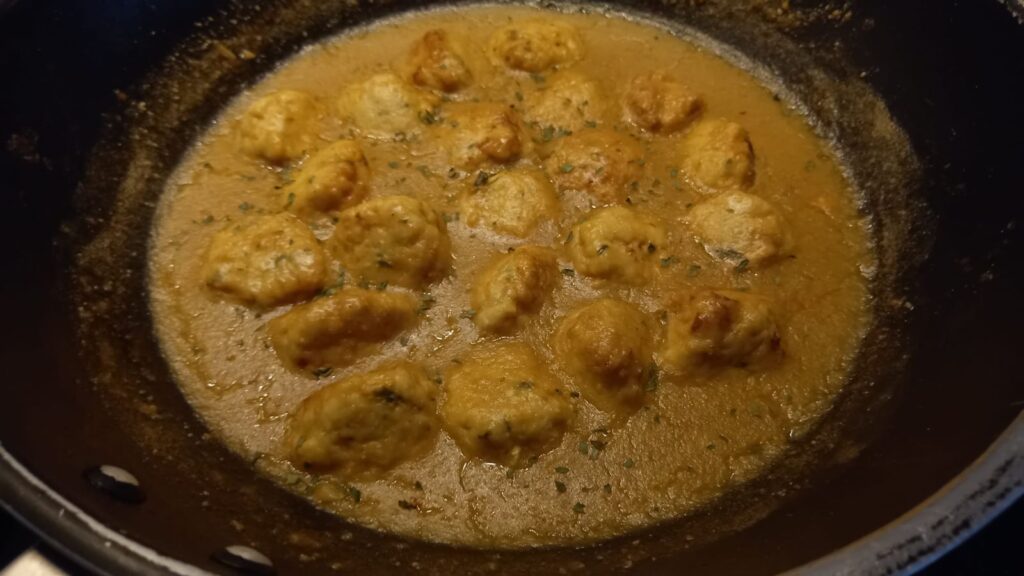 INGREDIENTES PREPARACIÓN Para las albóndigas, picamos los filetes de pollo muy finos y mezclamos, con el huevo, la miga de pan, el ajo y el perejil. Salpimentamos. Formamos pequeñas bolitas, las pasamos por harina y freímos sin dorar mucho. Reservamos. Pochamos la cebolla en aceite de oliva con el ajo, el laurel y el azafrán. …