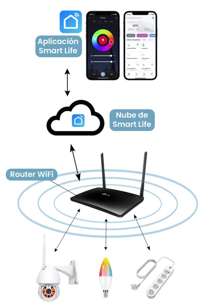 Para poder controlar los productos inteligentes, estos deben conectarse a la nube de la App Smart Life a través de Internet. Hay distintos modos de comunicación de los productos, como los protocolos WiFi o Zigbee. Cada uno de estos tiene unas ventajas y diferencias frente al otro. La elección de la conectividad de los productos dependerá de las necesidades que quieras cubrir al domotizar tus espacios.